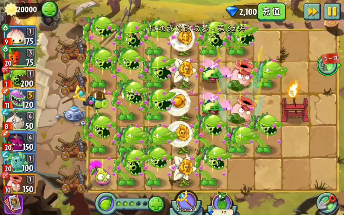 就按这个种前期放下面放两个椰子上面放两个向日葵过度,一颗能量豆直接喂,到后面就是能量豆开炫#植物大战僵尸2#攻略#游戏推荐