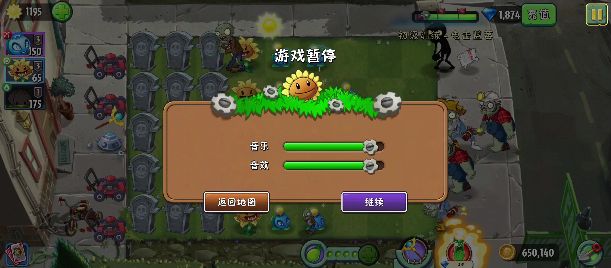 有一个绅士僵尸被寒冰菇大招吃了,然后就变成这样了,有一个僵尸存在所以结束不了游戏,植物也一直在打他。