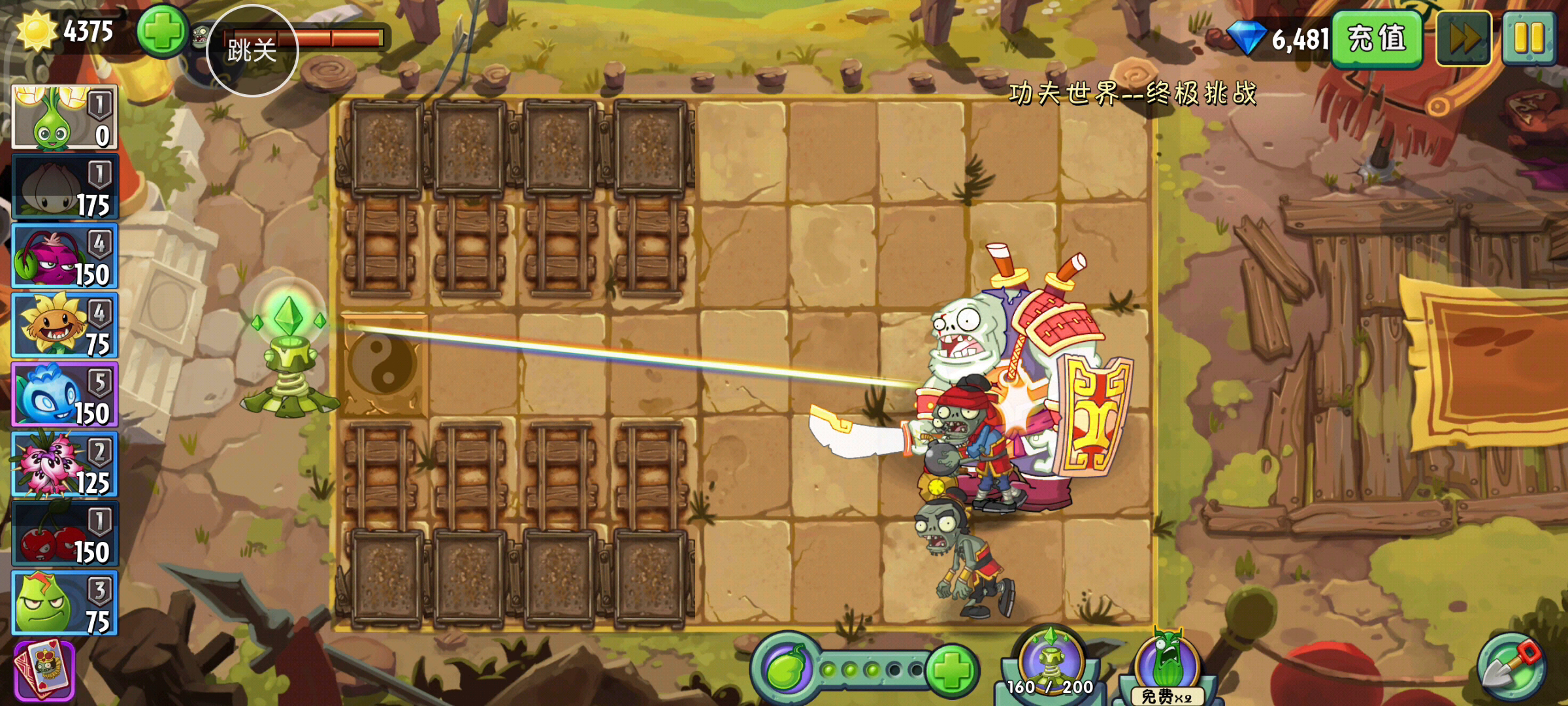 错过活动没有气流仙,用白瓜击退飞行僵尸,能极大的减少三叶草的使用,手机怕卡可以再打完boss关后再在第8排种一排食人花,后面4关第8排的食人花不用补, Boss关最前面的原豌换火炬菱镜菇(白瓜的方法看很久之前的大佬发的)