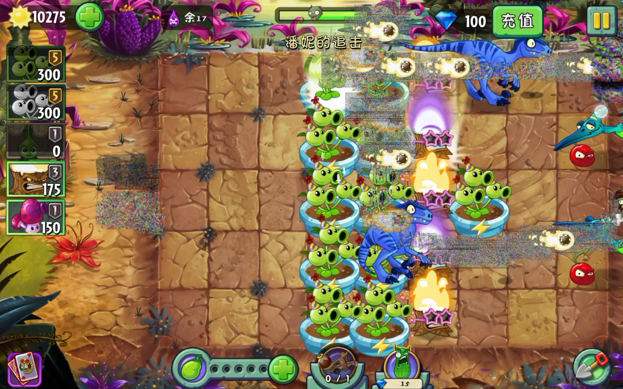有瓷砖会更好一点,只需要喂豆瓷砖点下一波就行 可以看到卡机,关卡秒速是过的特别慢的,原豌虽然是单体伤害但特效+僵尸多了可以造卡,提供更大的操作空间 卡机每秒点击下一波的次数更多,关卡进度也会加快,往往速刷点波数都要点好久,卡机就能几秒点到最后一波 我前面慢了,手机不好弄,喂豆点波衔接不上,不然连豆基本不会断。索性看“它”操作吧~(事实证明拿做脚本可以不要瓷砖) 没有瓷砖可以5天使开局,反正要尽量快速凑够豆都就好啦。操作好,豆子不会缺,多的满天飘