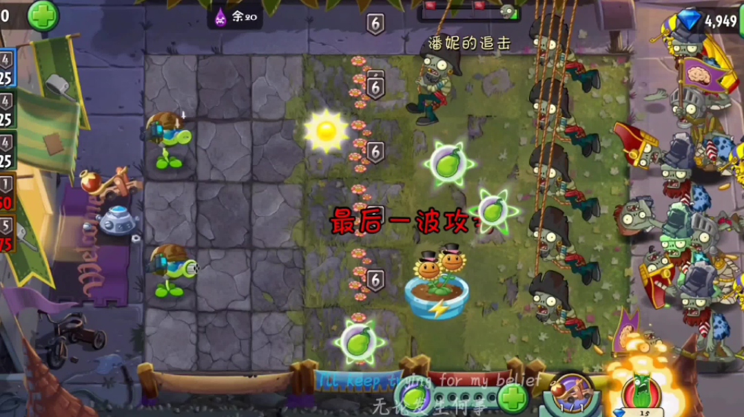 以前试过弹弓,伤害高刷的快,但容易刷到后面还有弹幕,导致打死一些僵尸,所以下一波不能按的太快,故意漏掉一些子弹。“也带过肥料伤害低一点,可能不用停顿 最后发现带时钟比较好,直接开局向日葵刚好700阳光重置一个不用等CD了,把握好时机(这里可以把植物铲掉,避免把僵尸打死了影响任务),出现最后一波字幕等飞索落地,不然在空中完成不了,一个黄瓜秒结任务,收尾 钻石惨痛的代价,好容易上头,虽然知道不值得 ( ̄▼ ̄)