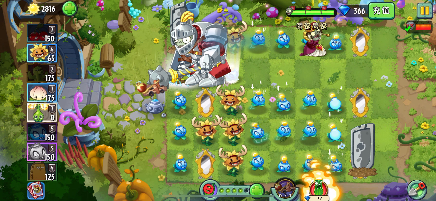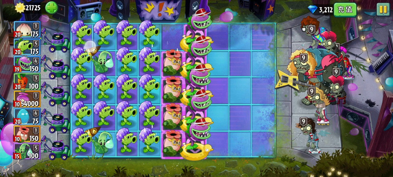 昨天练了2个小时,终于熟悉了,最后58的时候买电池不让我买了(尺v尺) 虽然矿车没了有点不习惯,但植物可以放前面,🌟🌟能更近打到,不会像矿车那样火力比较分散,最后还省一个豆 我思路是,在买了800能量豆之后升级,1600后种最后一个瓷砖。边喂豆边种瓷砖,或许不要最后一个瓷砖,直接升到满级伤害还要高点(4阶+150%攻防)。一个瓷砖放后面,阳光太多会挡 好像双萝卜没用,可以看情况换换