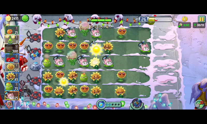 前面先种点向日葵猫度过前期吧,爆炸坚果放在前面防止骑士冲锋,后面一局6个豆,两棵仙人掌刷到结束,漏掉的冲过来交给坚果就好