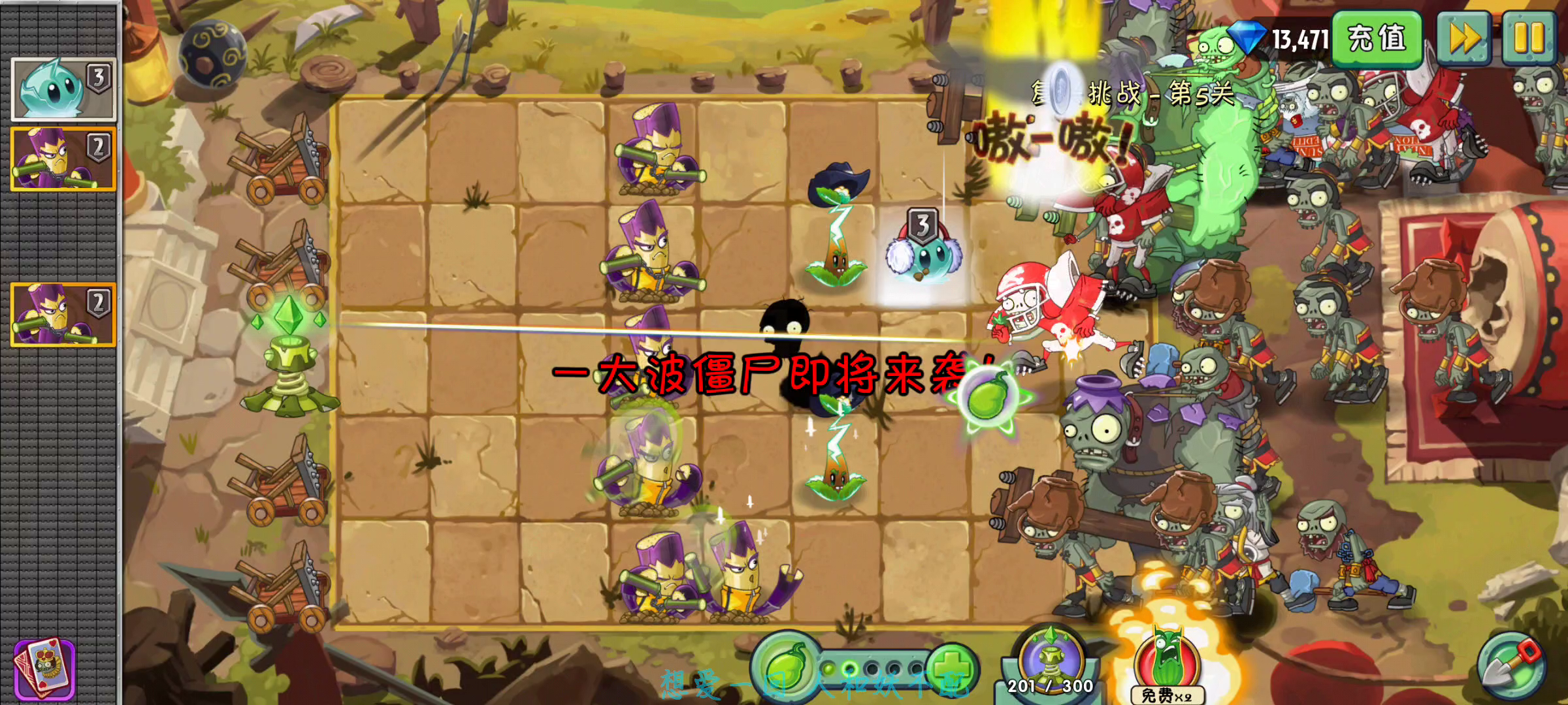 糯米控场,三叶草吹走防爆僵尸的毒雾,其他的倒还好,控制一下阳光数量就行了(完不成任务就不选,反正不差那20金蜗牛币😉),顺便吐槽一下这次回忆简单的刷新,我是第一次见到周二刷新简单的😅,这个官方能不能在回忆上下点功夫😅,最搞笑的是奖励没更新的时候boss关就打了一次拿了奖励,更新完又拿了一次😂😂,血赚60钻+160金蜗牛币