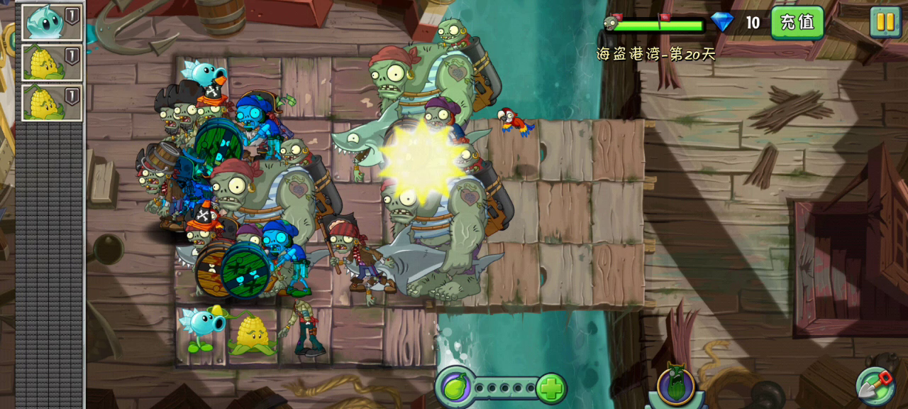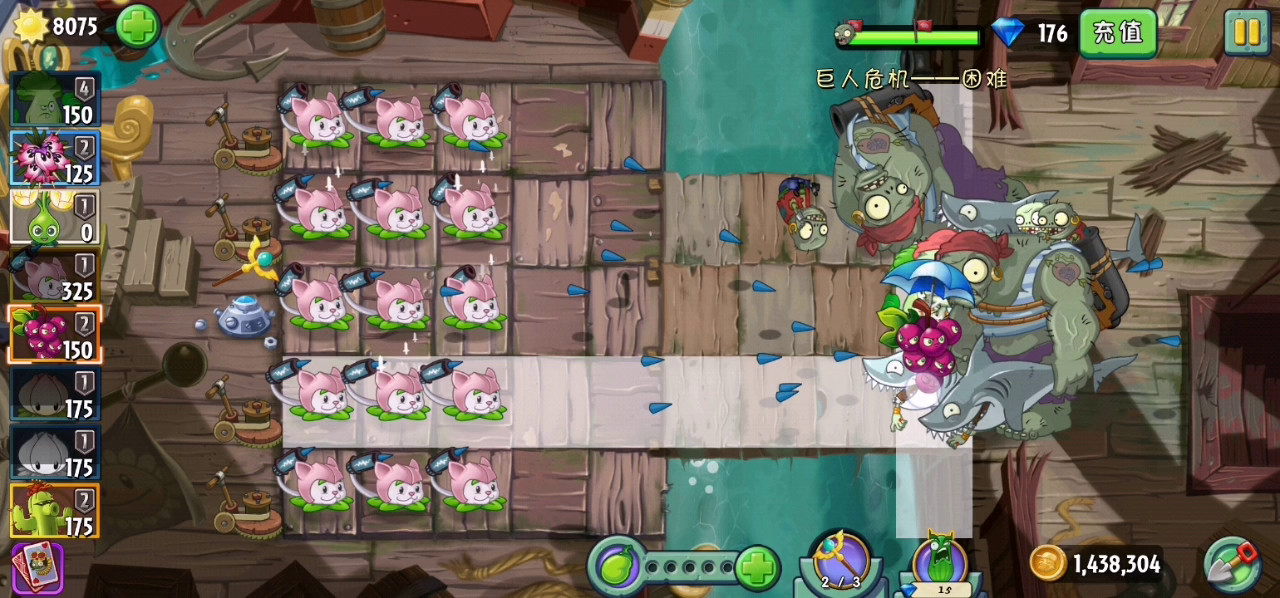 还是冰龙草,15路尽量不要种植植物,种植猫尾草就会攻击15路电磁盾僵尸,24路出来电磁盾僵尸直接樱桃炸弹炸,尽量让僵尸先冻住全息坚果这样可完成解冻的任务,没有使用能量豆导致关卡时间不够,使用能量豆的话,这局就是通关了。