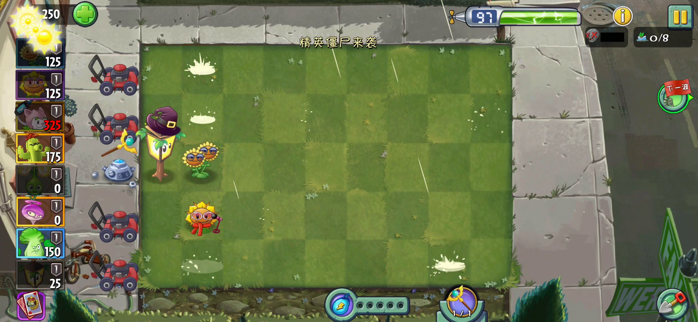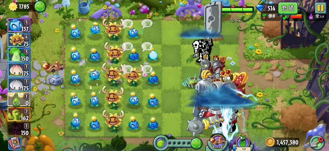 这么简单,我看谁还不去过 (3南瓜) 骑士无敌冲过来的时候点护盾,无敌完了点快的话可以在它还没跑过来之前点死,植物变成羊了也会挡住骑士冲撞 反应快一点其实可以死更少植物,一局掉3个能量豆可以种两棵能量花,5个能量豆可用,要是觉得阳光不够可以看3次广告,不用5连 建议竖屏玩,玩出音游的感觉就好了