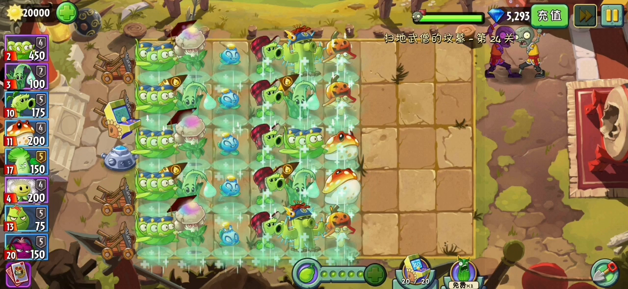 关键就是用冰仙子把睡眠僵尸秒了(阳光要好多,被睡眠也可以用) 手滑搞的开个水枪😂,不然可以用樱桃炸弹秒 有个葡萄也放歪了,害我得用樱桃炸弹补 以上改进一下就基本可以过了 也可以看看隔壁大佬的视频😂
