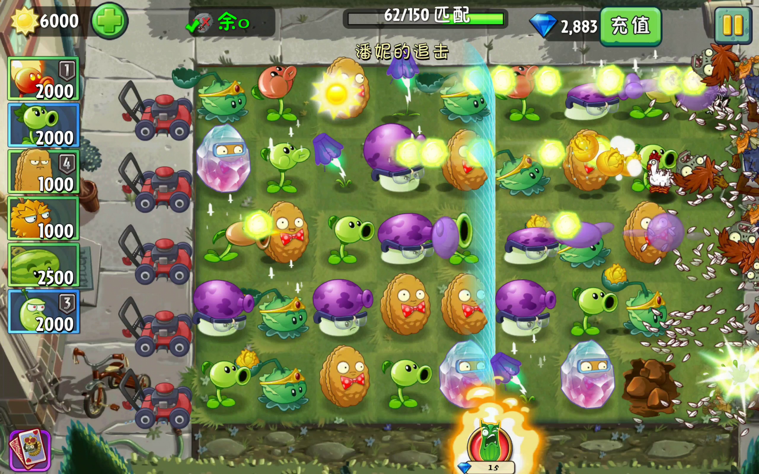 但是你这提醒的也太不明显了吧,这期的追击真的恶心,第一关,一辣椒,好不容易消了100次,仔细一看,好家伙,需要150次,以前不都是100次吗😡😡😡,马上就150次了,结果最下面一路一大波鸡贼,小推车都没了,最后以149次失败告终,恶心死了😈😈😈