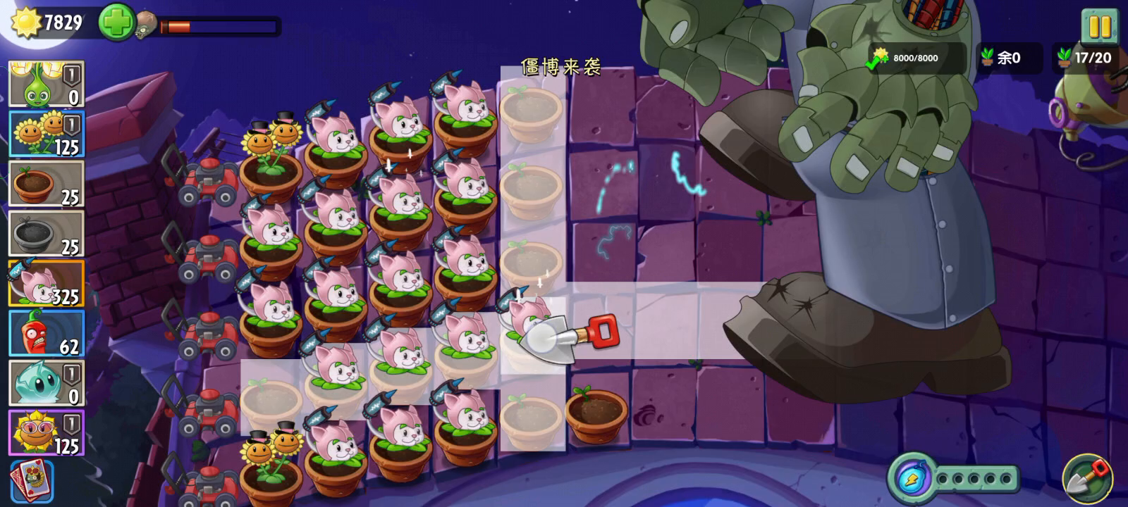 可以尝试堵裂缝,具体操作看视频(大概在第2大波末期会出,随便放在那给个植物能量豆就行),可以带个咖啡豆防大法师哦~