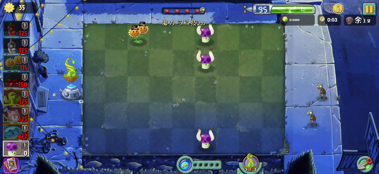 记得卡旗就行了 另外一提女巫通常对该排第一个植物施法,放小喷菇以防向日葵变走,并且可以以此判断有雾时僵尸位置以保证辣椒击杀任务 视频中第四波旗没卡好,可以试着2/4路双仙人掌开豆,前两波雾因为压力较小推荐不卡
