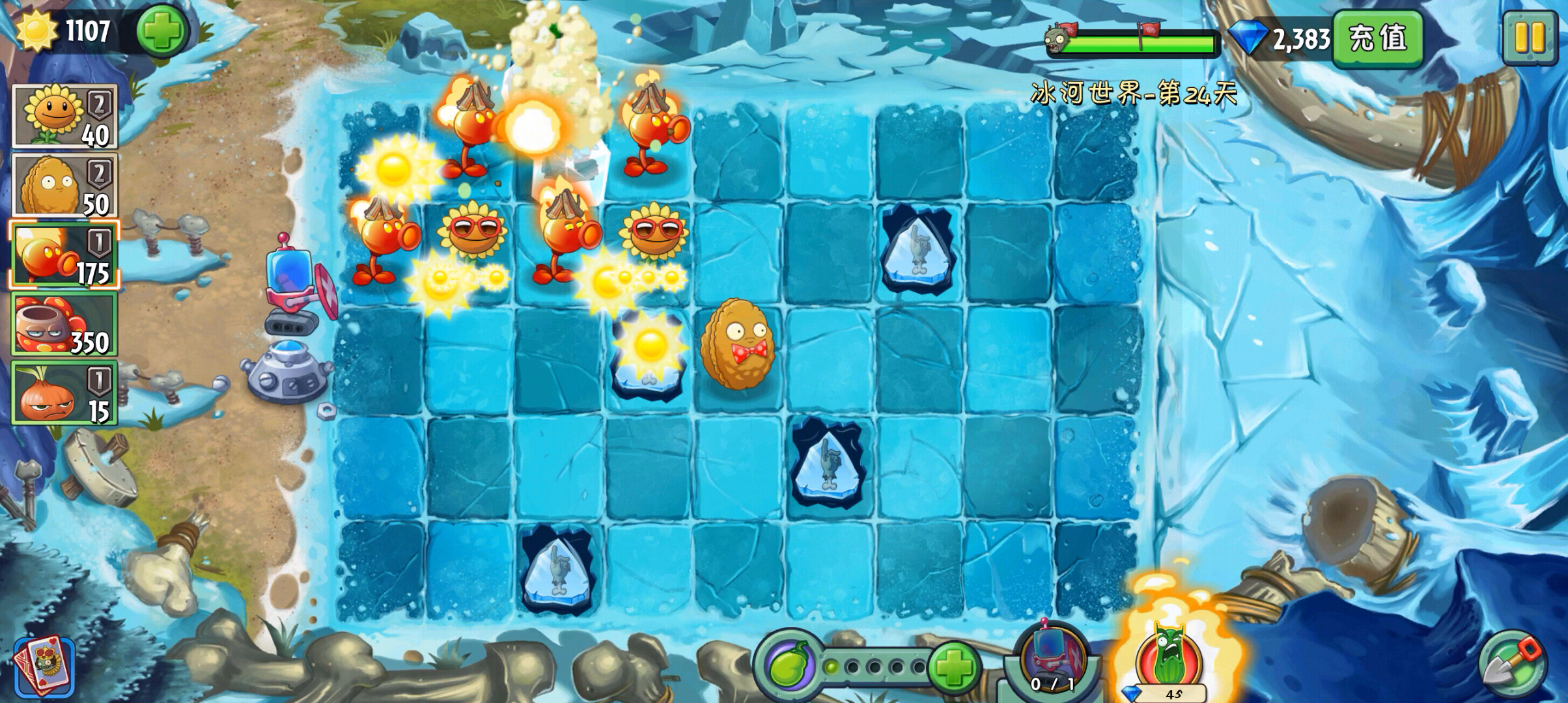 第三关小鬼炮僵尸没有太多的威胁,还是一样很简单过的。