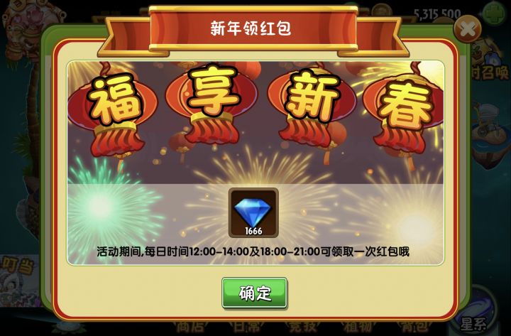 大年初一抽到了1666钻石,还有两次瓷砖碎片。新春快乐啊,也祝大家新的一年马到成功