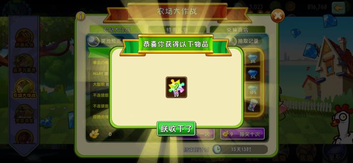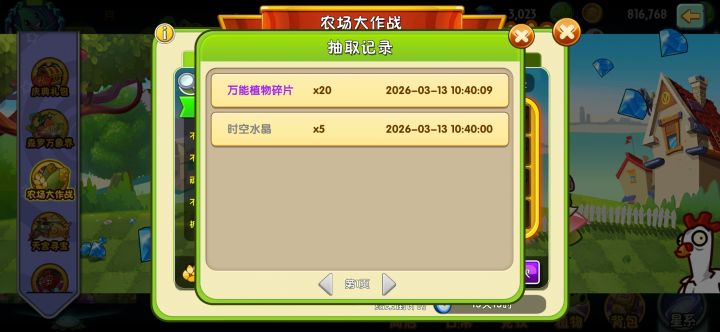 以为出2000钻石够多的了,没想到第二次十连抽出了1万多钻石,氪的最回本的一集(就是不知道为什么中奖名单里面没显示我)至于我自选了什么?当然是万能碎片了。抽到万能碎片之后就选不了万能碎片了,只能从剩下的里面再选,我选的进阶书。至于我为什么不选神器?因为我不需要#植物大战僵尸2 #游戏日常 #游戏种草计划