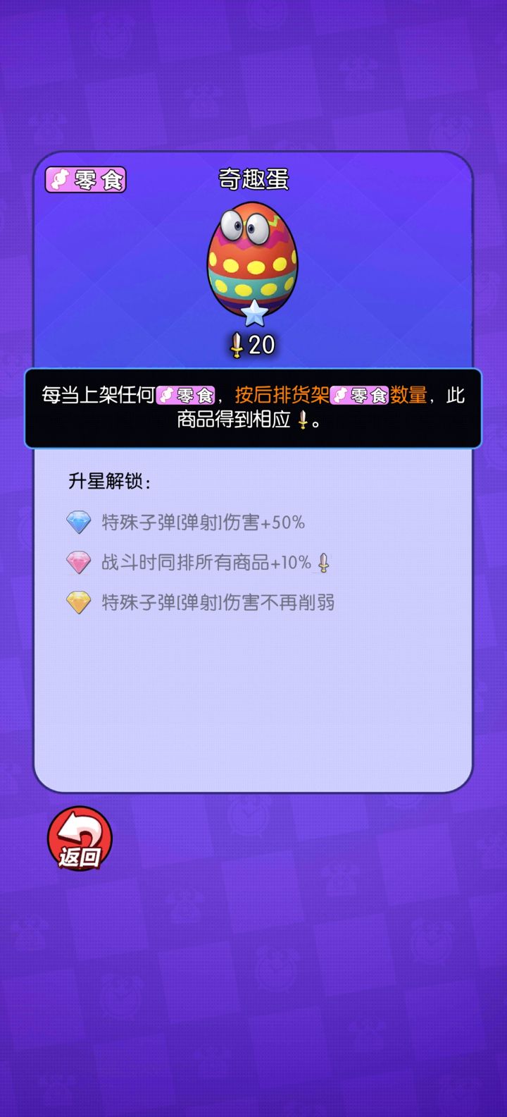 零食真的很鸡肋,套娃玩法根本不行,十几把不一定有这一把。水果必玩,水果之间的共益比较强大。一下子就可以成倍加强攻击。除此之外,其他的丢没法玩。。。除非氪金。。。