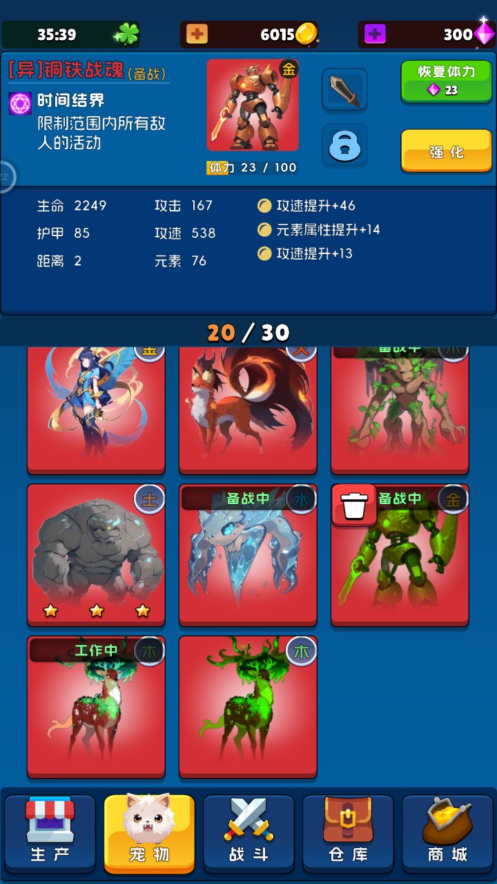 战斗会消耗精灵的体力,可在小屋中查看体力恢复的速度;如果食物类型的材料充足,则精灵们的体力恢复速度将会加快;可以手动调整提供食物的倍数,以增加精灵的体力恢复速度;仓库中的食物会自动的被消耗掉;