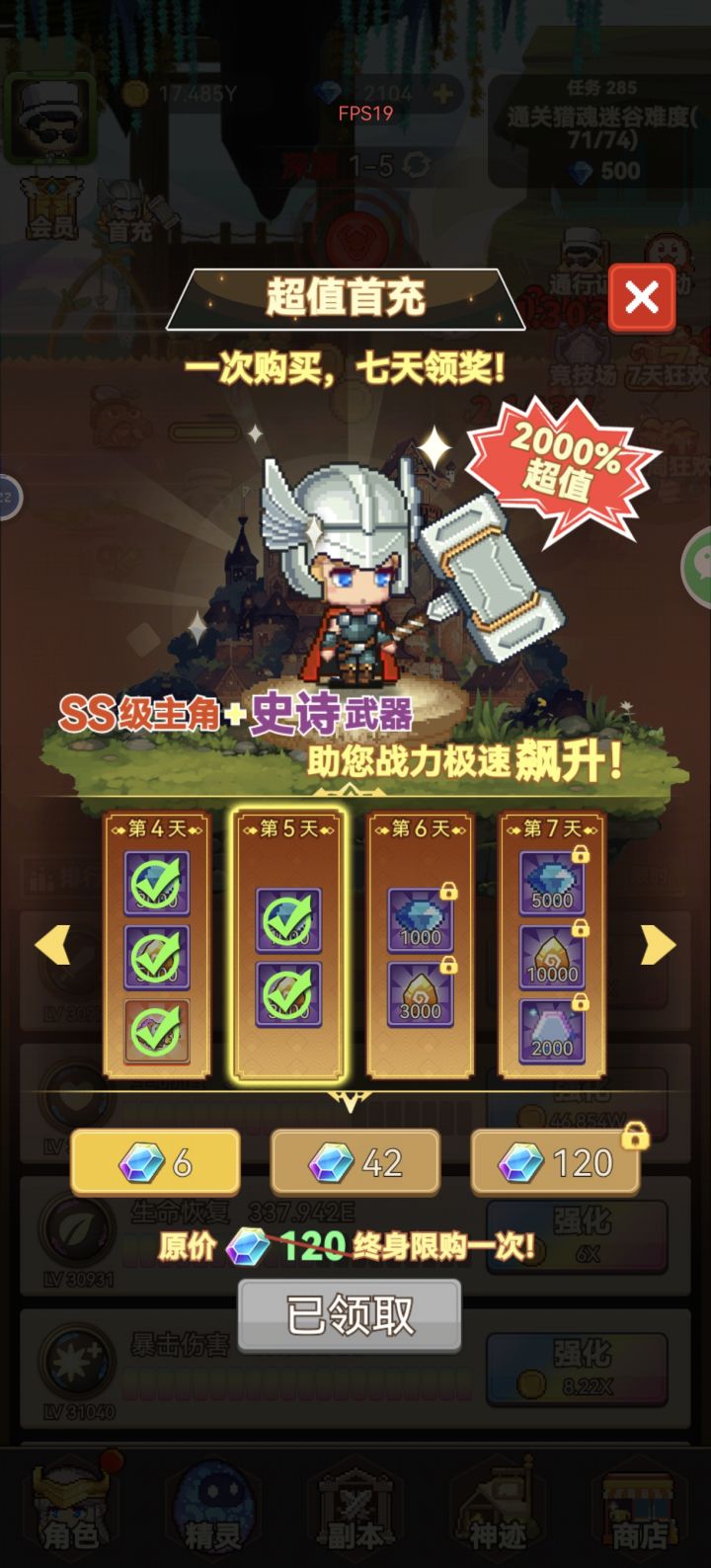 三天前偶然的机会接触到这款游戏,画风,玩法,各种刷刷刷,是我的菜没错了(吐槽一点,优化可能没那么好,挂机久了会好卡)正片开始!这篇攻略只给前期刚进坑的小伙伴看的。进入游戏,先➕官方群(642916972)领取福利礼包,每天都有。这时候领到的彩钻要合理运用,因为每一步都关键冲榜,首充可以买一个,然后就是免广告,自动祝福,团卡1和传说装备三件套,后期可以通过邀请好友,群里福利,攻略等官方各种渠道