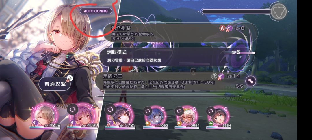 刚刚看了看帖子,好像没人提这个,我就先提一下这个“自动战斗”,自动战斗分为NOMAL和FULL。FULL顾名思议,就是点了FULL角色技能栏里所有技能都会用,会根据角色sp多少使用技能。但是重点是NOMAL,大部分人不知道怎么设置NOMAL,刷图时有时会看到AI的逆天操作 先点左上角的AUTO GOMFIG 初始时是全点的,单独设置可以再次点掉不要的技能,这样后面点NOMAL就会单独释放打勾的 后