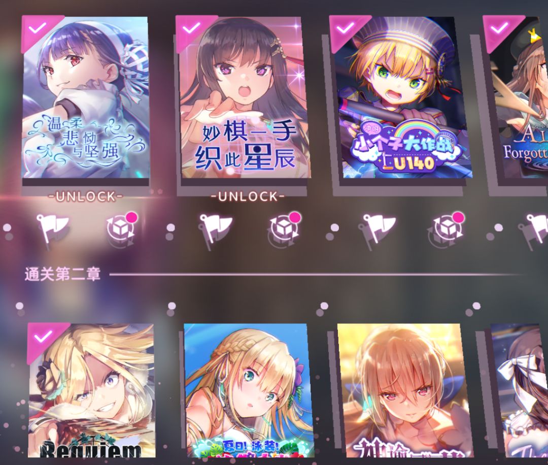 旁边这一排都可以进入把剧情过了,然后拿硬币换角色,一共11个S角色,有几个S角色技能很好的,比如泳装活动这个,换的月歌技能时群体火属性攻击,过主线推图非常好用(S卡技能可以给SS用),可以把月歌那个沙雕回复技能换了用这个