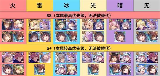 在前面 首先,这个游戏的角色技能有5个元素属性(火冰雷光暗)和3个物理属性(斩突打),由于现在没有专门强化特定物理属性的技能,甚至有部分boss专门克制无元素属性,所以配队时是要尽量配元素队的。 由于每期活动boss都会有不同的属性抗性与弱点,所以并不存在哪个属性本身强势或者弱势的情况。除非输出严重不足,否则基本上只要避开属性抗性就可以,属性弱点对上了最好、对不上也能打。 由于同一个角色的不