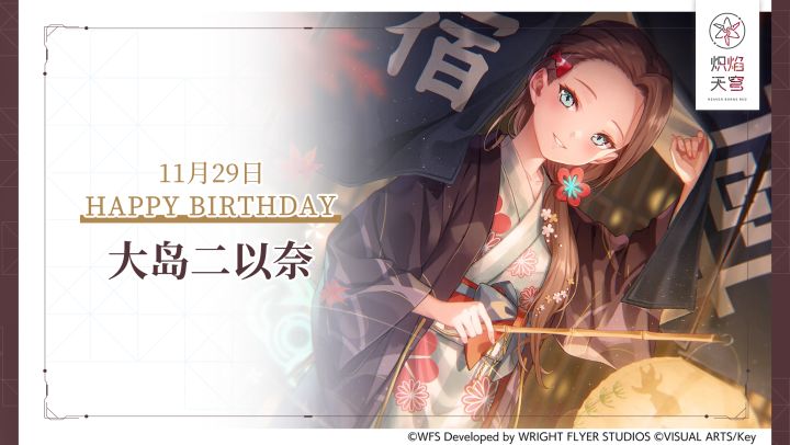 【Happy Birthday】今天是第31E部队成员大岛二以奈的生日哦,生日快乐~!------------------------------------>>>活动资讯▶《炽焰天穹》初冬纪念特别活动现已开启~立即前往:https://game.bilibili.com/HBR/winter-onset>>>活动福利初冬版本内共计可获得免费240抽+SS风格×3!