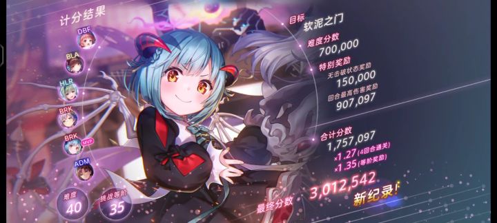伤害变低了不少,但是回合数能压缩到7回合了,分高了24w!