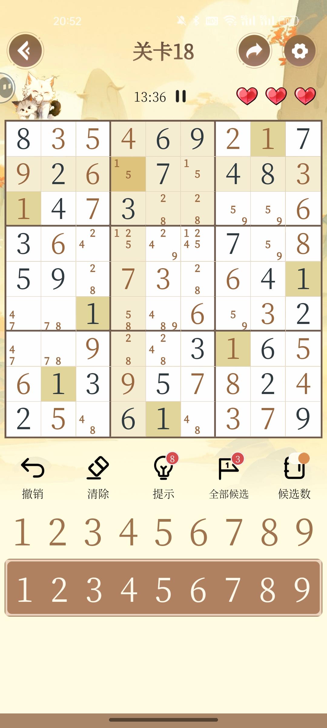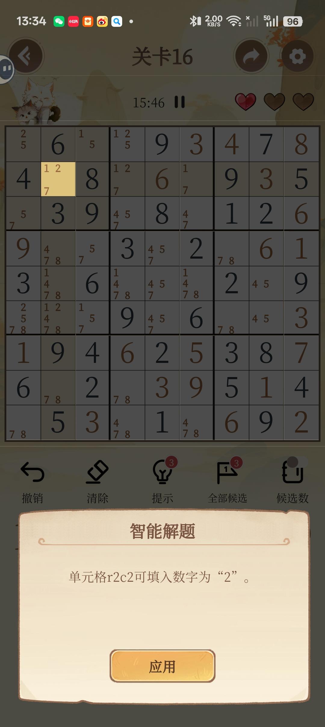 逻辑游戏!数独的魅力~解数!无广告、不氪金,签到就送九尾狐