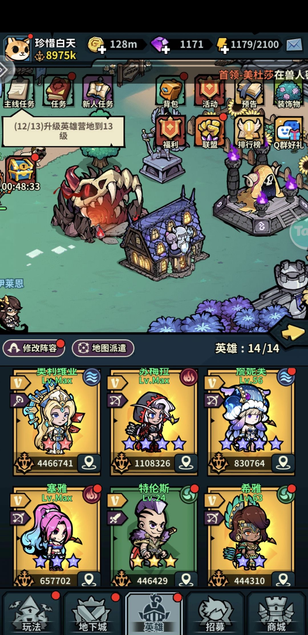 不知不觉今天已经开服52天,英雄碎片分解已经出来,各位看情况分配。 35天到合区这个期间作为小氪玩家来说我没有氪多少,也千万不要为了短时间提高战力急于充值,截止到2月11号一共充值1430,这其中还包括我买了推图的战令,迷宫花了一百多,光奶拿了个本体,如果去除这些,大体充值1200左右,非常的精打细算。 下面讲重点,35天到合区之前,就氪一个接力礼包,我氪到氪18块的档,其他什么都不要消费,这时候