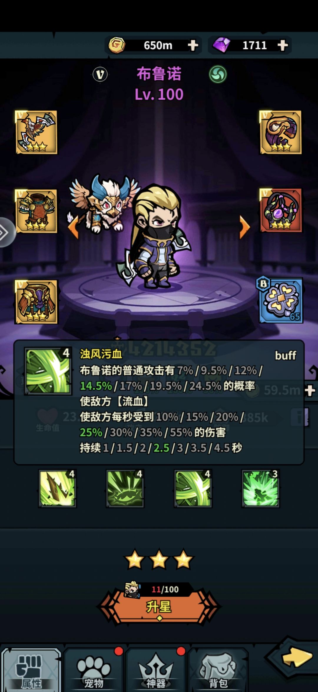 获取渠道 普通招募:能 灵魂石:稀有灵魂石、稀有灵魂石-风 技能分析 一技能:浊风之轮 评价:单论技能伤害加成,是紫卡弓手最高的数值了(和肖恩并列第一)。 二技能 浊风践踏 评价:增加暴击率百分比,数值较低,无关痛痒了。 三技能 浊风污血 评价:核心技能,普功就能挂流血DOT,配合满攻速,1秒内就能挂上,持续时间也很可观,几乎很难断状态。 四技能 浊风集束 评价:这种技能描述有没有很熟悉?没错