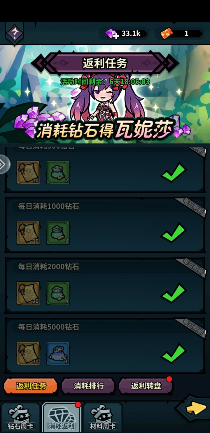 常规活动为钻石周卡,消耗钻石返利,返利为抽奖和消耗排名(瓦妮莎)。满月庆典分为白嫖活动和氪金活动。白嫖活动-庆典渔场-每天都可以白嫖5个宝箱,有s神器碎片,洗练锁定石等等,挺不错的。最后一条鱼有点难抓。氪金活动1-拉菲拉-群攻后排法师,神器有眩晕功能。该活动完成一层就需要300碎片,即为1个648。每层奖励不同,有英雄碎片,红色套装,拉菲拉神器。目前满氪实测22个648能一专属神器,一满星拉