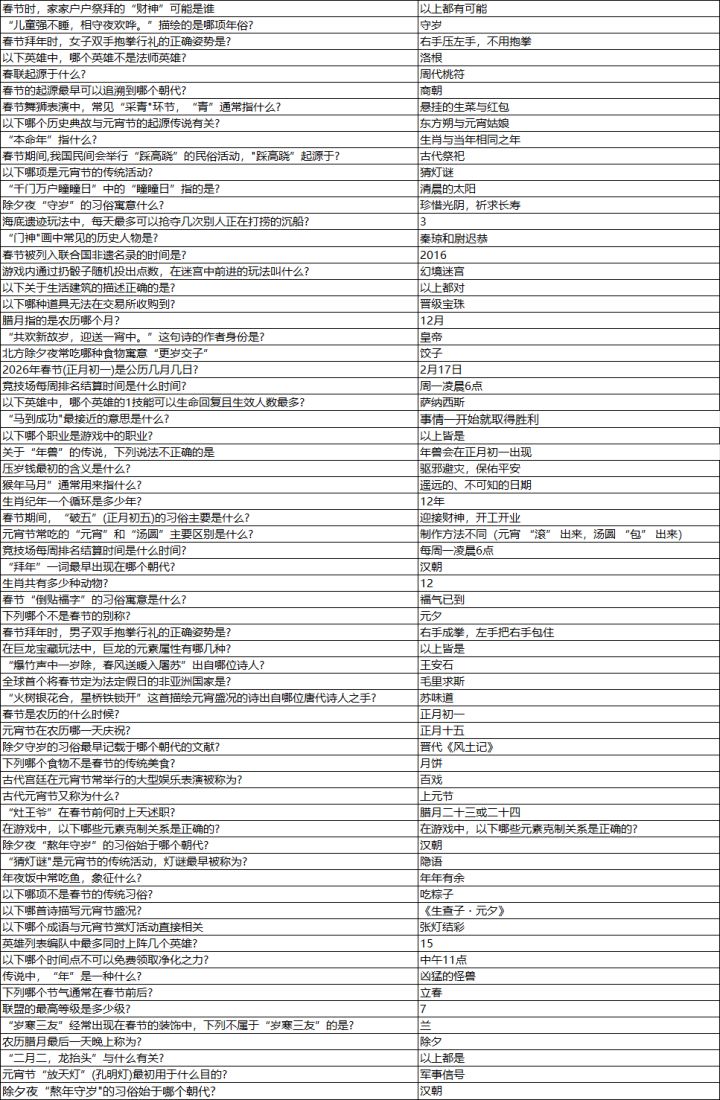 春节答题 题库 惠存~