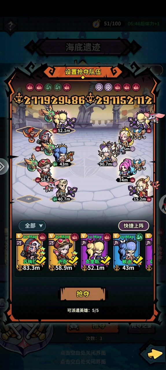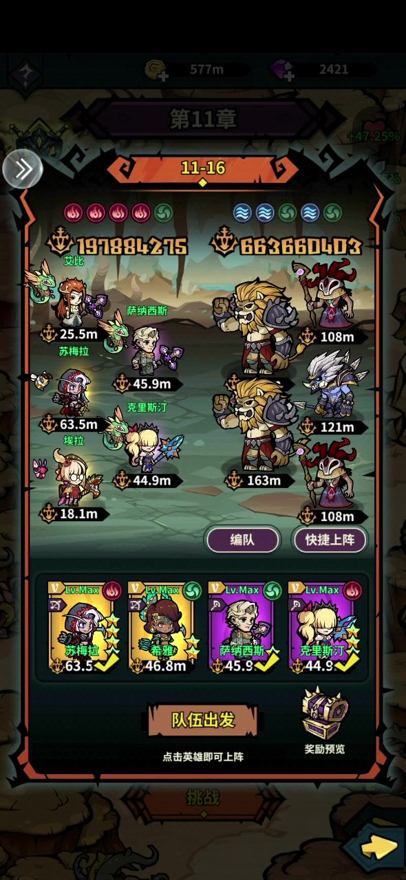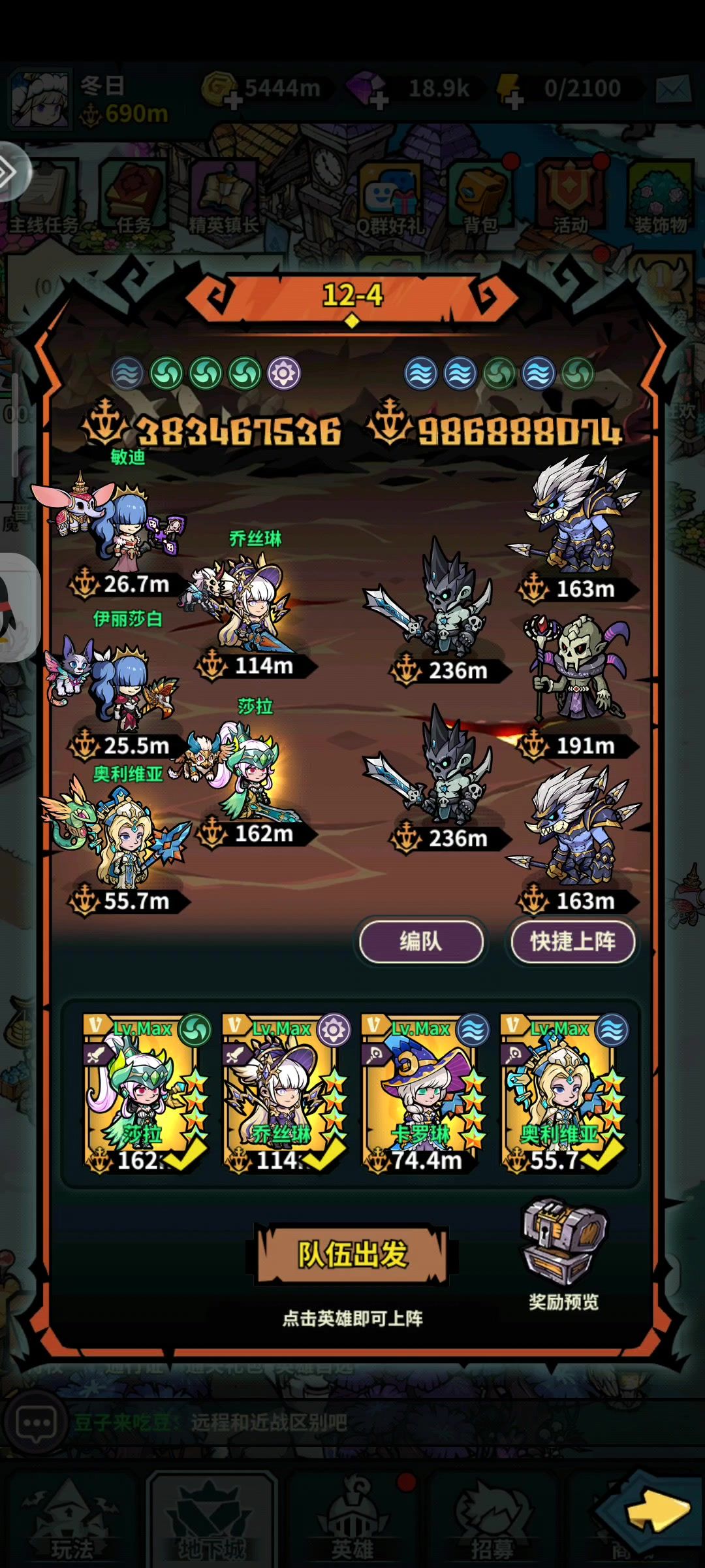 开服五十天,一个弓没练,全靠平砍。 阵容:乔,莎拉,伊丽莎白是核心,可配双奶或单奶+卡洛琳。 推图:【12-5】11阶以前双战士单点突破一个前排,直接打后排比较快。11阶之后【中规中矩】,主要战士又要当前排又要兼顾输出。 召唤BOSS: 【13级恶魔】偏弱,核心原因是输出在前排并同时抗伤,来回死。同时,刷dot的挂件必须和输出同时在场才能打出伤害(容易一个在场一个在复活,逆向循环) 精灵/挂机高阶