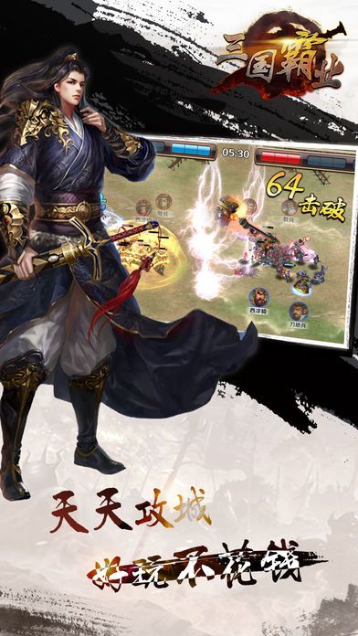 《三国霸业》是一款三国题材的策略手机游戏,作为三国手游的终结者,我们拒绝纯横版固定式站位战场、拒绝纯数值比拼、拒绝卡牌结算、拒绝推图刷关!我们致力于打造一个充满想象力的三国,希望玩家在此体验到最初三国游戏的乐趣,攻城掠地,君临天下!极致微操、特色兵种、全单兵结算,丰富内政、南征北讨、PVP对抗,一切尽在《三国霸业》!