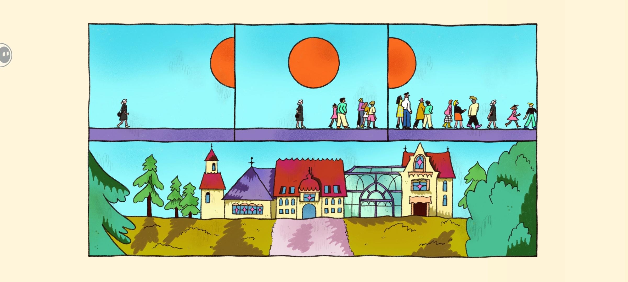 时长不是特别长,但是很有意思。很温馨的手绘风格,从男女主不同时期生活的房子中获取谜题,切换男女主的房子与时间,前面发生的事情会改变后来的结果,帮助两人在一起。