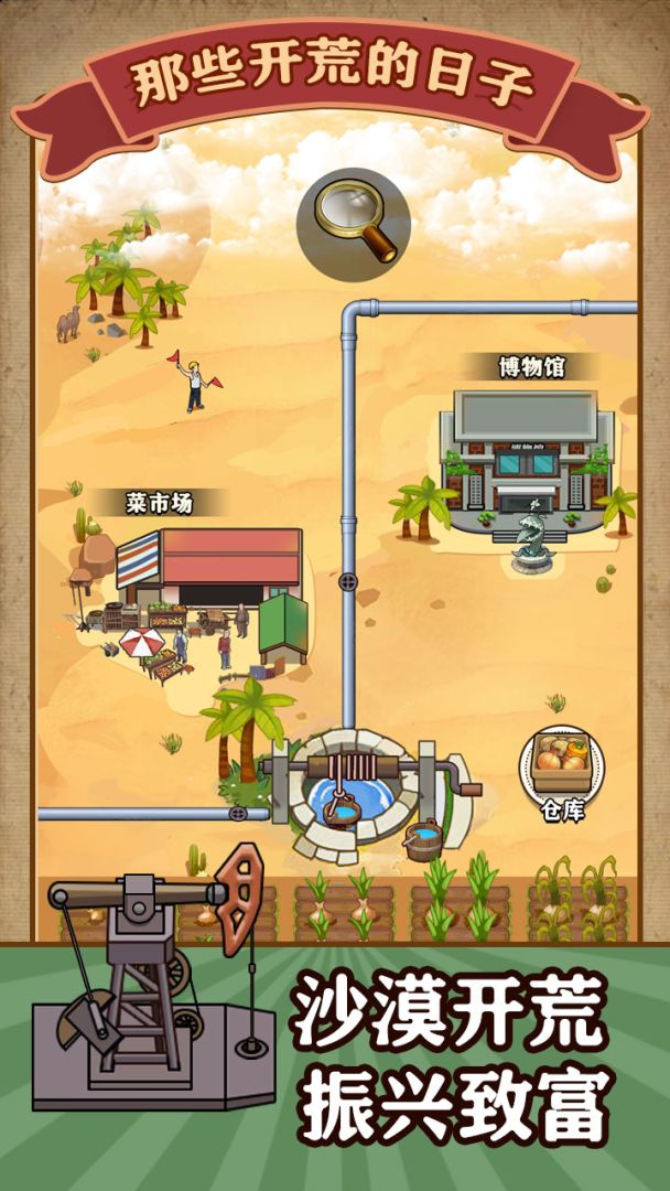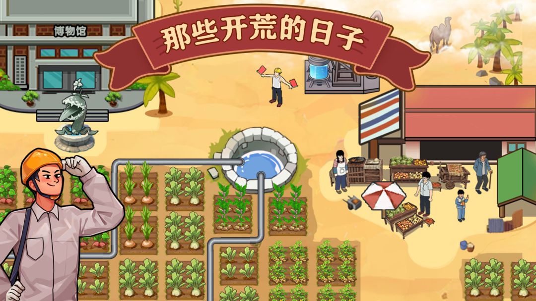 您需要在沙漠中寻找稀缺的水资源,并且合理规划灌溉路线,将一块块干旱的沙地摇身一变成为可耕作的农田,开荒沙漠需要源源不断的资金,您还需要在沙漠中修建菜市场、博物馆等商业化建筑,形成具有特色的沙漠经济体,为壮大开荒沙漠事业提供强而有力的资金支持