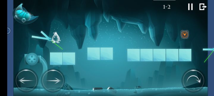 相比上一关卡,这关的玩家就要走慢一点了,但依然没有难度,小心一点就行。关卡一开始,你会发现承载物之间的间隙很大,水珠人是没办法跳过去的。所以,1的秒针(上图)运行到右侧时,水珠人先走到秒针上,再跳到方块,然后在方块上等待,2的秒针运行到左侧时,水珠人跳上去,这样掉到污水里的机率就减少了。左右移动的方块出现。当方块移动到上图位置时,水珠人有足够的安全距离跳上去,然后像坐传送带一样,移动到右侧