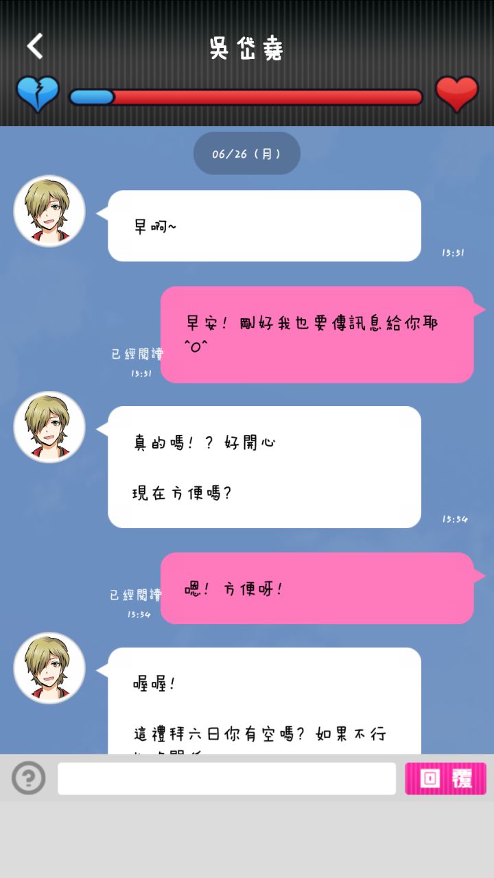 这家伙也有点小变态QAQ 说选错的地方说明有更好的答案我没来得及试1 怎么了吗2 常常去那边吗3 没有,该不会跟其他女生去的吧4 好厉害5 这个是?6 嗯,大学朋友7 和女生去的8 说明一下【虽然选错。下面圆回来了,好险】9朋友拿到招待券10 交换号码11 你想干嘛12 不用啦13 这什么?【选错QAQ】14 这是故意的吧?15 我只爱你一个16冷静一点!17 一