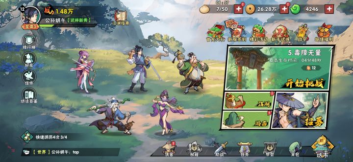 玩了100多天,目前打到66关,宗师全,2个异满脉,刚开始不会玩,后来在游戏中遇到老玩家,请教了很多问题,现在基本可以研究如何更好把握资源。建议游戏更新互动方面,分好玩家层级,使游戏更有可玩性和参与性,活动更丰富。