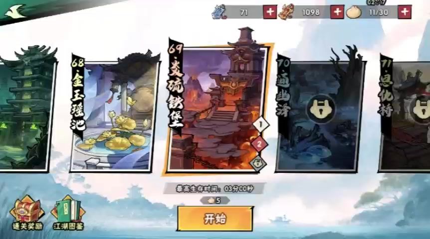 看了一下论坛零散的攻略一天就通了。所以我整合了一下,每一关都可以按下面的步骤走,位置不唯一仅供参考。 1以「回血瓶,飞镖,禅杖,飞刀」4种道具为主,数量4个为一组堆放 2全部升到3级,3级后如果出现了更多的数量,就把前面的合成一个4级,保持位置不变。 另:刷出来奶瓶越多,过关越稳,过不了的原因基本是奶瓶随机出来得太少,多打一两次即可。 左上角没事做可以塞个3、4级葫芦占位置。 开局板块太空可