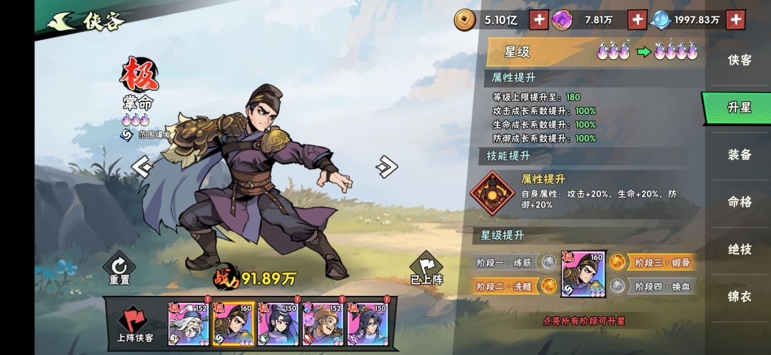 侠客升星表