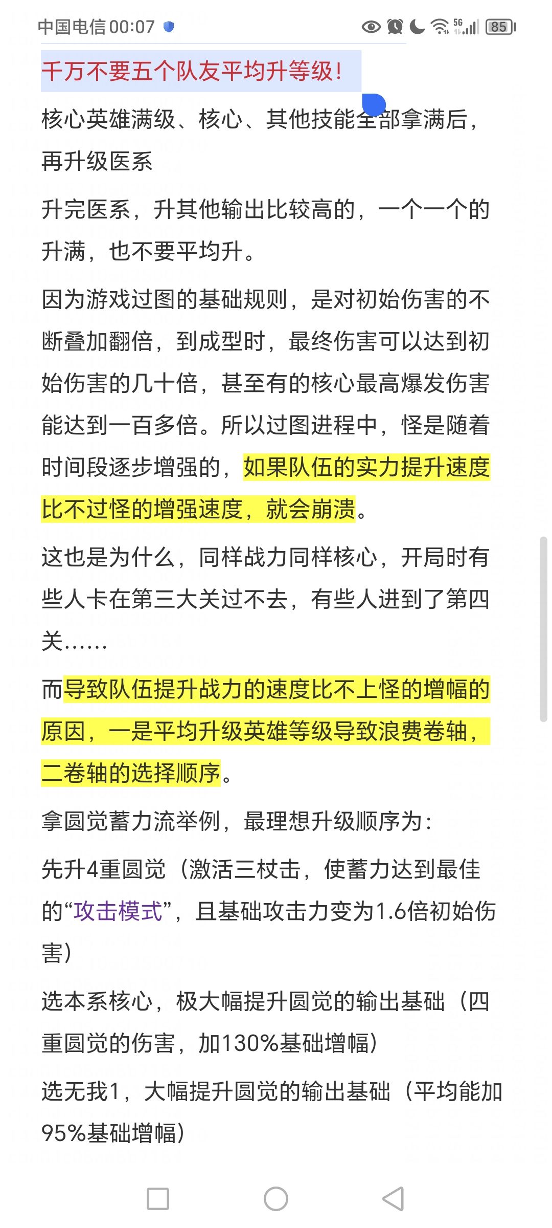 by乔不工 本篇暂时仅深入圆觉蓄力流,其他流派玩法的玩家权当借鉴。本篇过长,一般玩家仅看各段结论就行 一,输出类型: 同类型系数相加,不同类型系数相乘(特别感谢萧尹的核心计算理论) 1, “英雄的系数” 不同的英雄,自身的系数不同,如果不计算敌方的防御减伤的话, 英雄的入场输出即是面板攻击*英雄系数(细算还要加上觉醒的百分比等因素,由于不影响本篇计算,故此处忽略不计) 英雄的系数会随着图内英雄等级