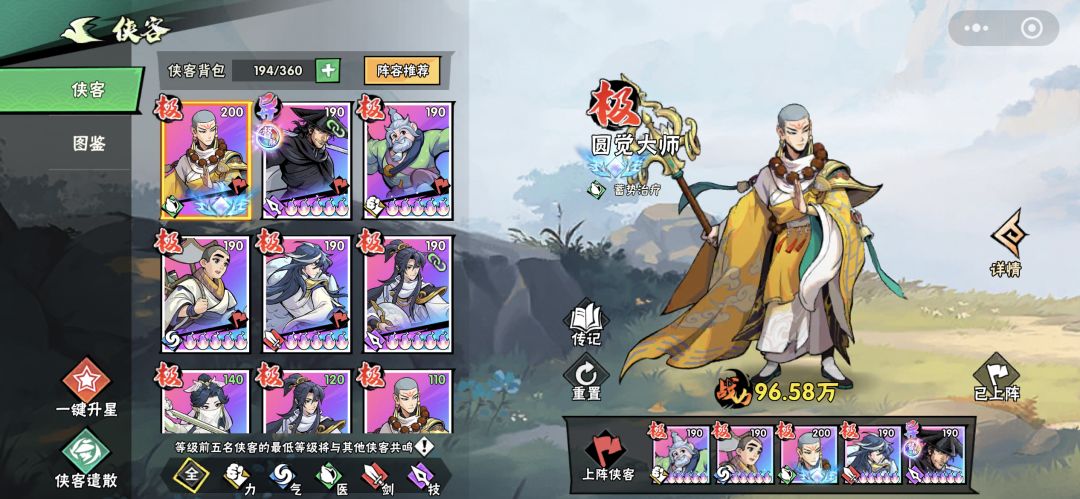这篇文章主要提供新手玩家参考,不当之处请勿喷。开始! 阵容方面新手起步抽到什么卡就用什么卡,不用太在意,后面根据自己的能力来确定阵容,如果走蓄力流需要手动,主 c 圆觉。所有资源首先给到圆觉玩单核,后面搭配其他侠客,简单说下,首先在力系里面,在没有东升跟升龙的前提下我强力推荐空空。如果不换升龙跟东升可以一直待下去。风系里面主推荐玄龄,再没有霍东阁出来的前提下,玄龄在风系里面可以算上 T0 位置。再