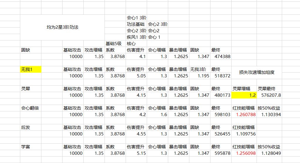以下为数据收益图,成型上限比灵犀高很多,不考虑自身坦度的情况来选择双会功法。