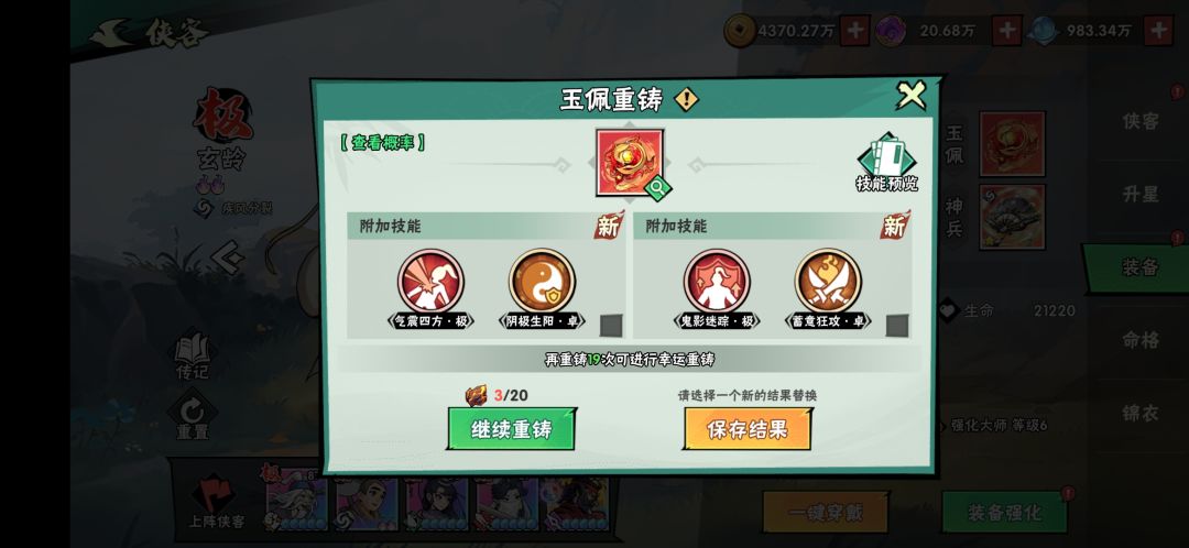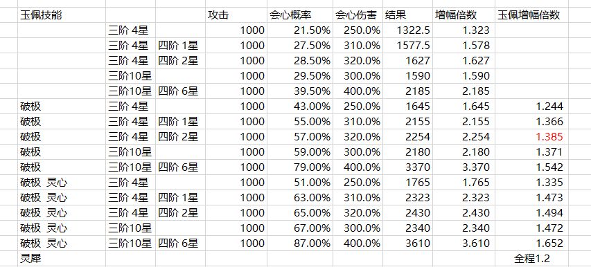 最后一图还有玉佩3星重铸消耗,已经技能组合概率