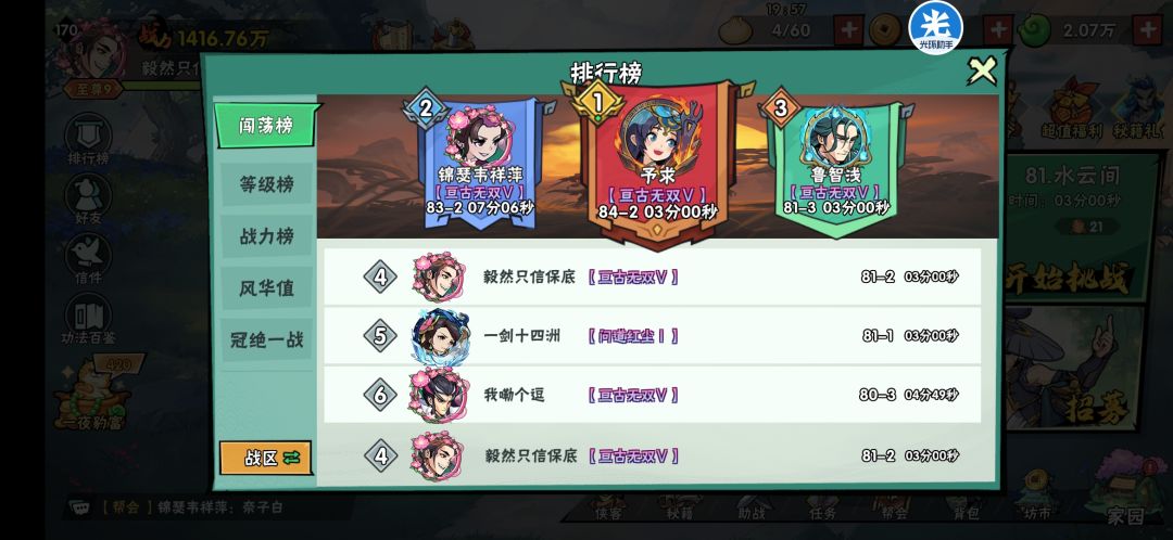 武侠大明星英雄令排行