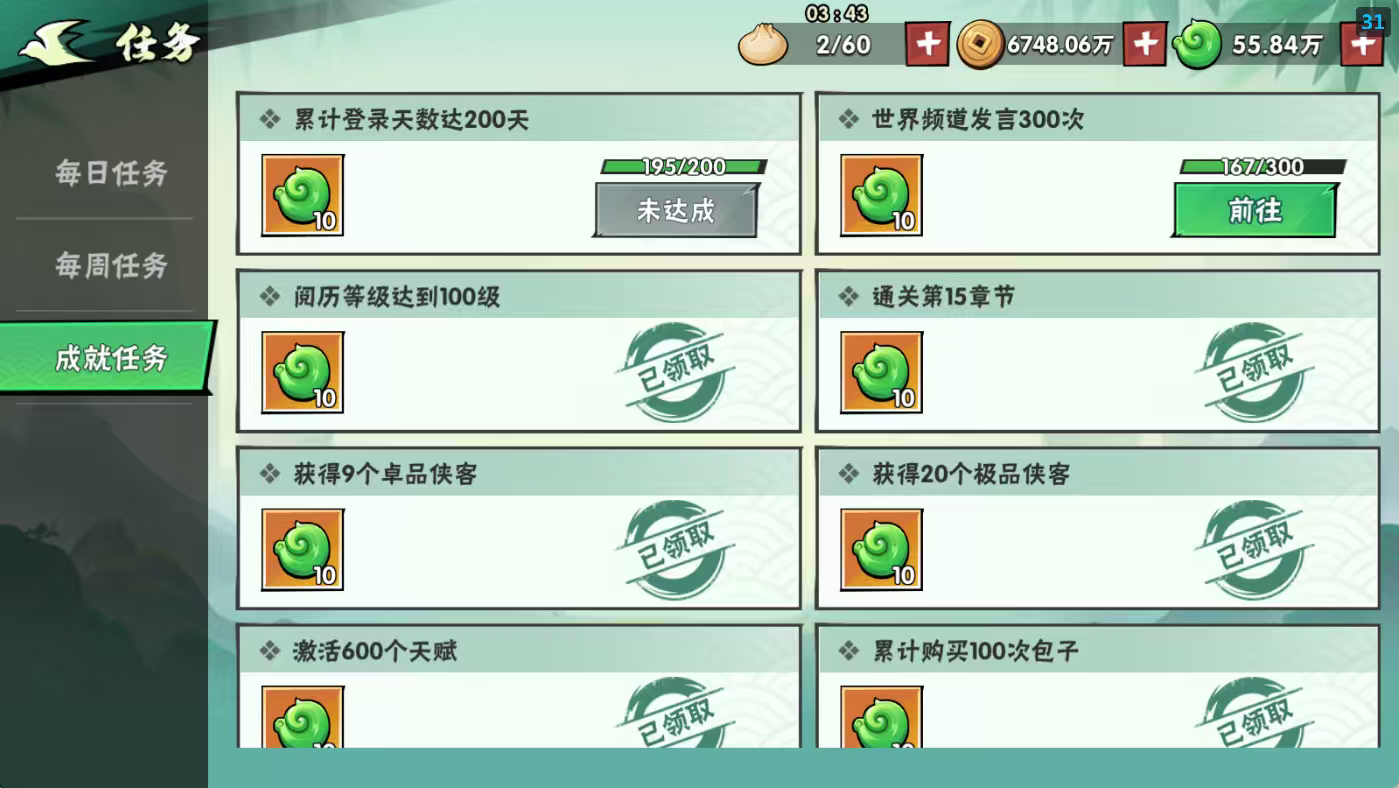 江玉郎 77抽一张韩立 66.4抽一张南宫婉 104抽一张马上至尊9了,停氪啦!月卡党走起,打发点时间!