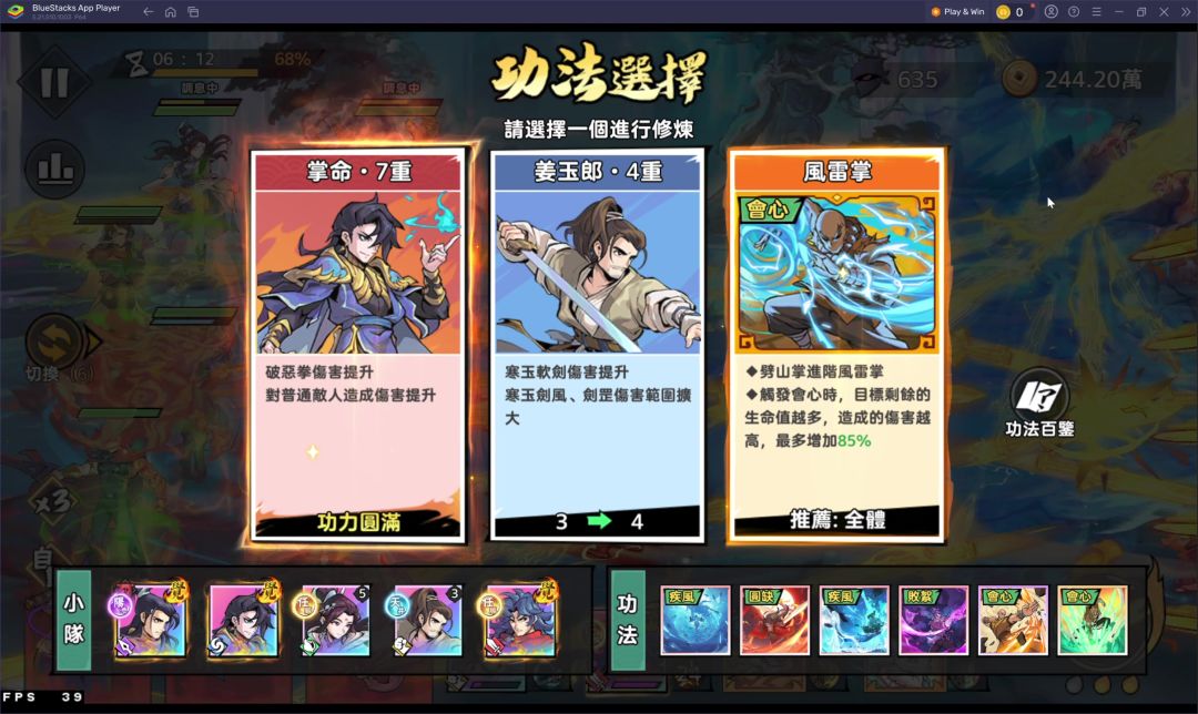 我卡了一个多月,从6000卡到7000多前两个boss都磕磕袢袢,功法也没来想要的技核+撕裂,被迫选择会心,哪知威力竟十分惊人,对boss二王造成巨大杀伤,以前狂暴时还剩4、5管血,这次先消灭了一个,剩一个就好打了。[表情_尬笑][表情_尬笑]