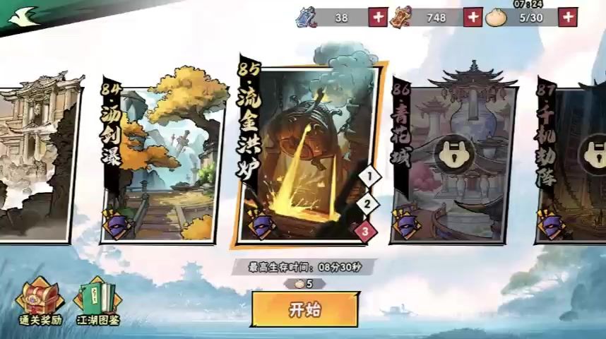 这关很吃力,主要靠运气,功法给的好过了。目前我这套功法对于我来说是最优解,双会心一直没用过是因为会心一的四阶功法一直没拿到,双会心最关键的就是4阶会心一,没它输出必然打折扣,四阶会心全的用双疾风双会心,败絮,核心应该也可以。86-3根本毫无希望,队长选南宫婉可以见第一个boss,拿到4阶败絮伤害也不够,选别人20秒就躺了,弓箭手往你脚下射个火圈,疯狂掉血没等第二个侠客出来就结束了。等到巅峰13再尝