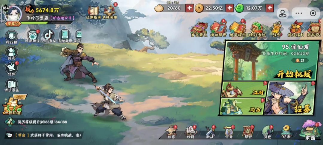5600万战力,平民配置,无霸刀,无极武魂,巅峰10级。之前屯了400个极秘籍万能卷轴,单点分精错骨手到8级(视频最后附秘籍融汇),今天试了一下打boss1,多打了最后三管血,总伤害提升了30%。 另外,由于玉佩技能"天降宝礼"和2个八星融汇,在boss1前拿到3个四阶功法。 侠客: 韩立473万攻击力带"一击",掌命450万带"擒贼"。 太难了,继续沉淀中...... 视频最后附秘籍等级和融汇