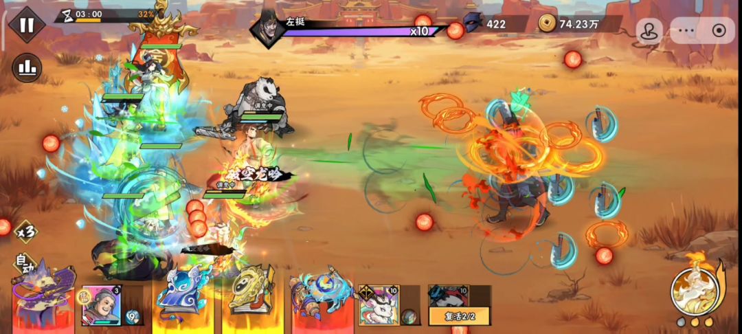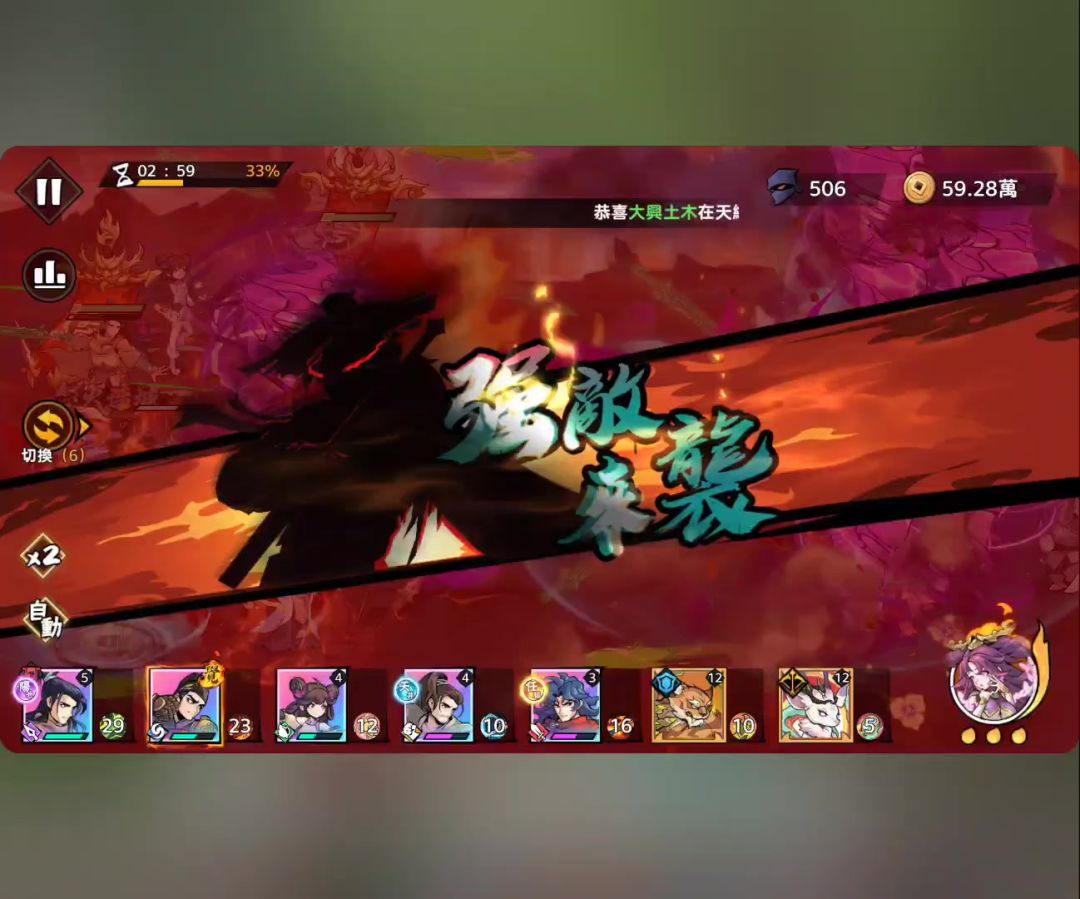 这关没啥特别,78万攻击姜在南宫加持下硬抗过去。因为二号红羊死活不出,把命格换成猪,增加点攻击。没刷到彩寸击,正常情况不能自动蓄力,但是按我现在的玉佩和熊猫技能加持,姜只要收到伤害就可以自动蓄力,所以暂时不纠结羊命格。