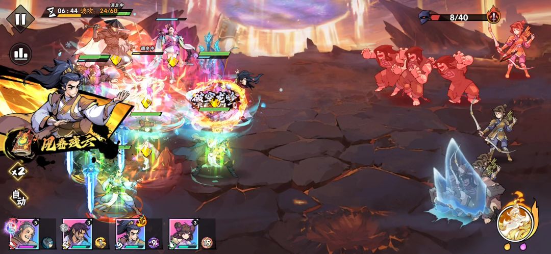 强烈建议战斗界面加个”开关特效”功能。 这关的难点在于游戏时间7分50秒,天降猴子无限晕+远程弓箭手群。之前几次都团灭,这次换了牛命格+铁布衫+疾风12+暴雨梨花。也不知道哪个起作用,最后没有团灭。 视频最后附侠客属性+装备,战力4500万